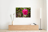 Museum-quality polycotton canvas (410gsm), stretched over a 1.5" pine wood frame. Wired and ready to hang.
