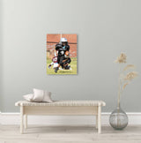 Museum-quality 410gsm polycotton canvas stretched on a 1.5" pine wood frame with back wire ready to hang straight out of the box.